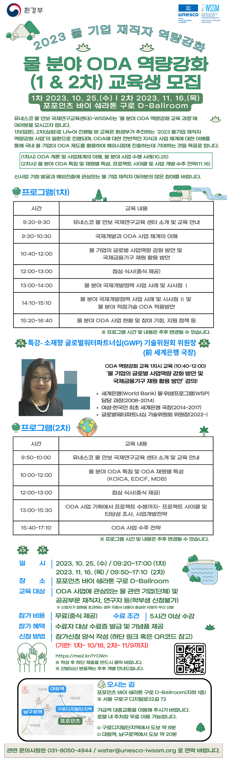 물 분야 ODA 역량강화 교육생 모집(1·2차) - 신청 마감
