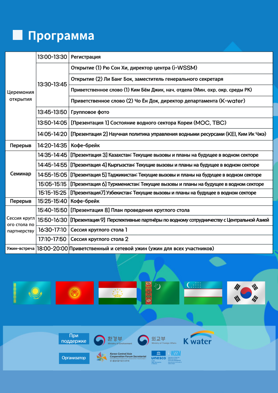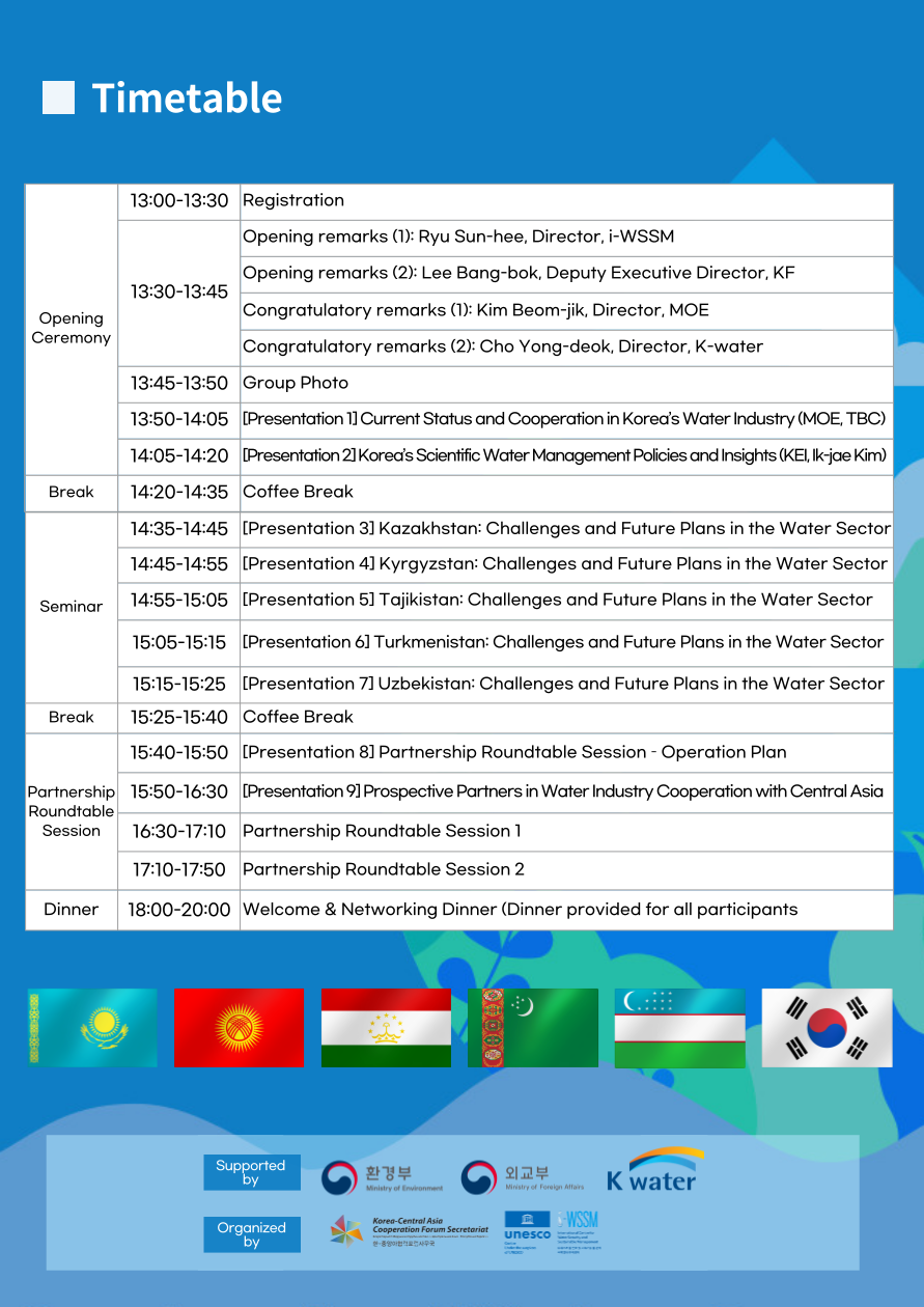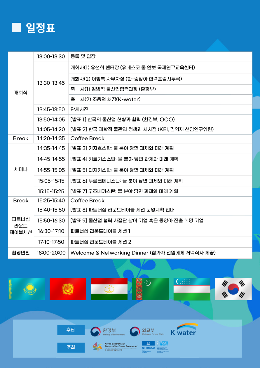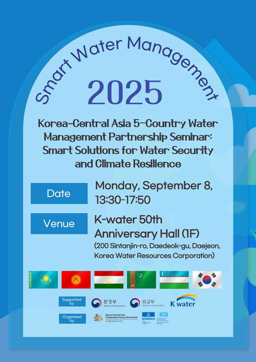 한-중앙아 5개국 물관리 협력 세미나(Korea–Central Asia 5-Country Water Management Partnership Seminar) 행사 안내