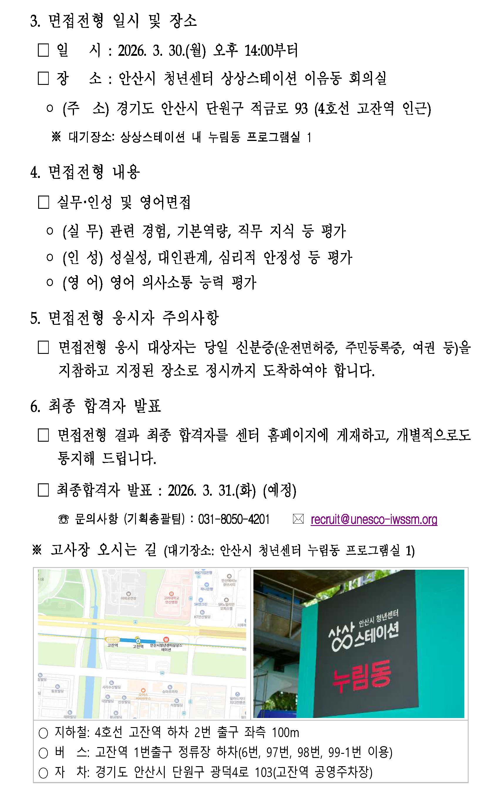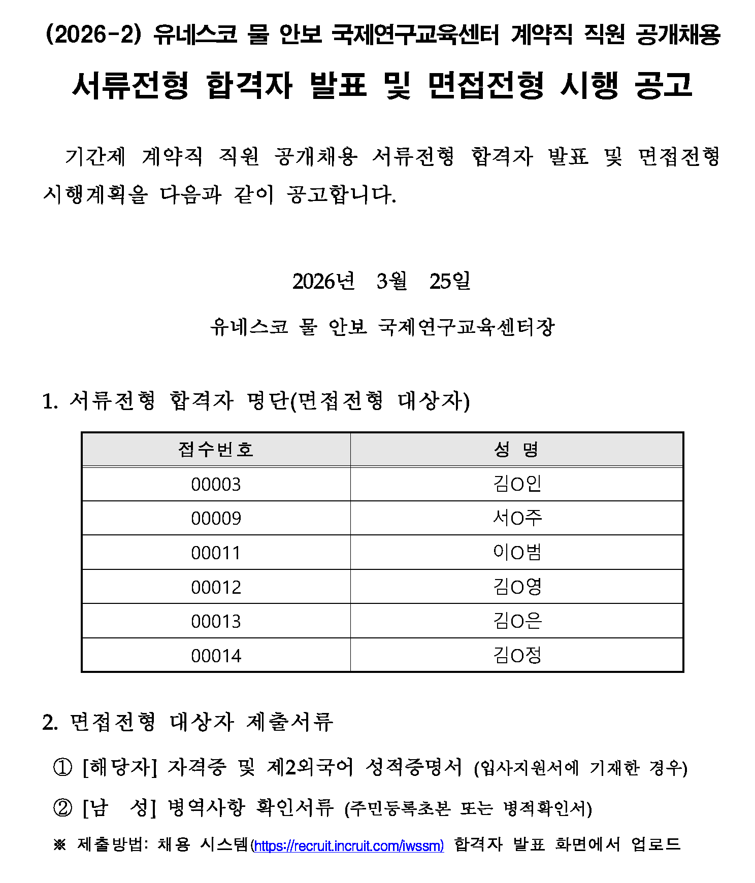 PrevList (2026-2) 기간제 계약직 채용 서류전형 합격자 발표 및 면접전형 시행 공고 ADMIN 2026.03.25 14:20:29 | 12 Attached File (2026-2)_서류전형_합격자_발표_및_면접전형_시행_공고_260325.pdf 본문 이 글을 SNS로 보내기